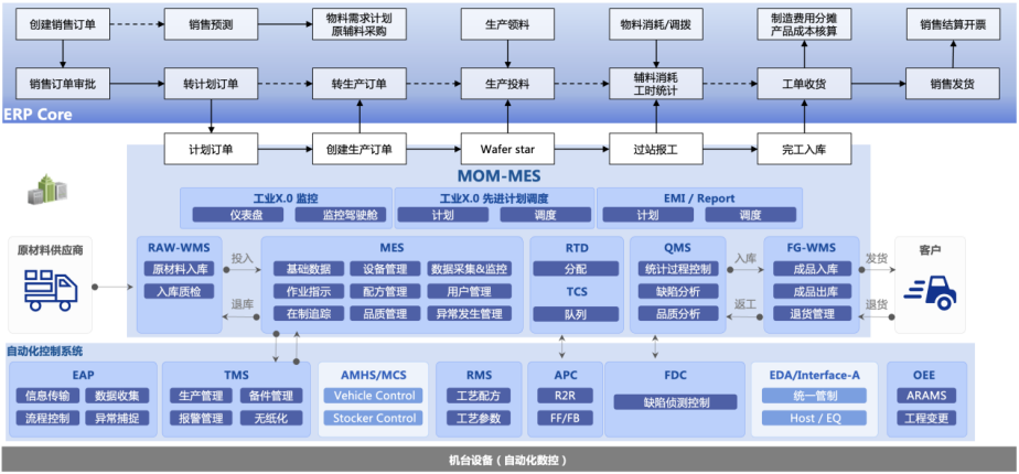 图:ERP与MOM-MES半导体行业典型集成示意图